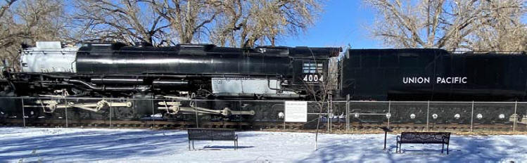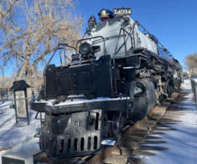 4-8-8-4 Alco on static display at Holliday Park in Cheyenne. Built in 1941, retired in 1958. Weight: 1.2 million pounds. Length: 132+ feet. Holds 28 tons of oil fuel and 25,000 gallons of water. Built for service between Cheyenne and Ogden, Utah. Cheyenne is also home to an operating Big Boy, 4014, stored in a UP steam shop.