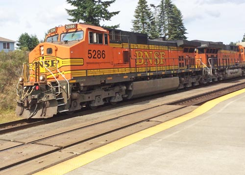 Idaho. Right, UP crew change at Olympia-Lacey on an EMD SD-70 locomotive No. 8419.